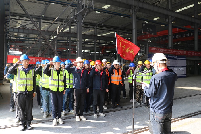 圖為高陵廠區(qū)負(fù)責(zé)人郝慧奇帶領(lǐng)全體青年突擊隊員宣誓