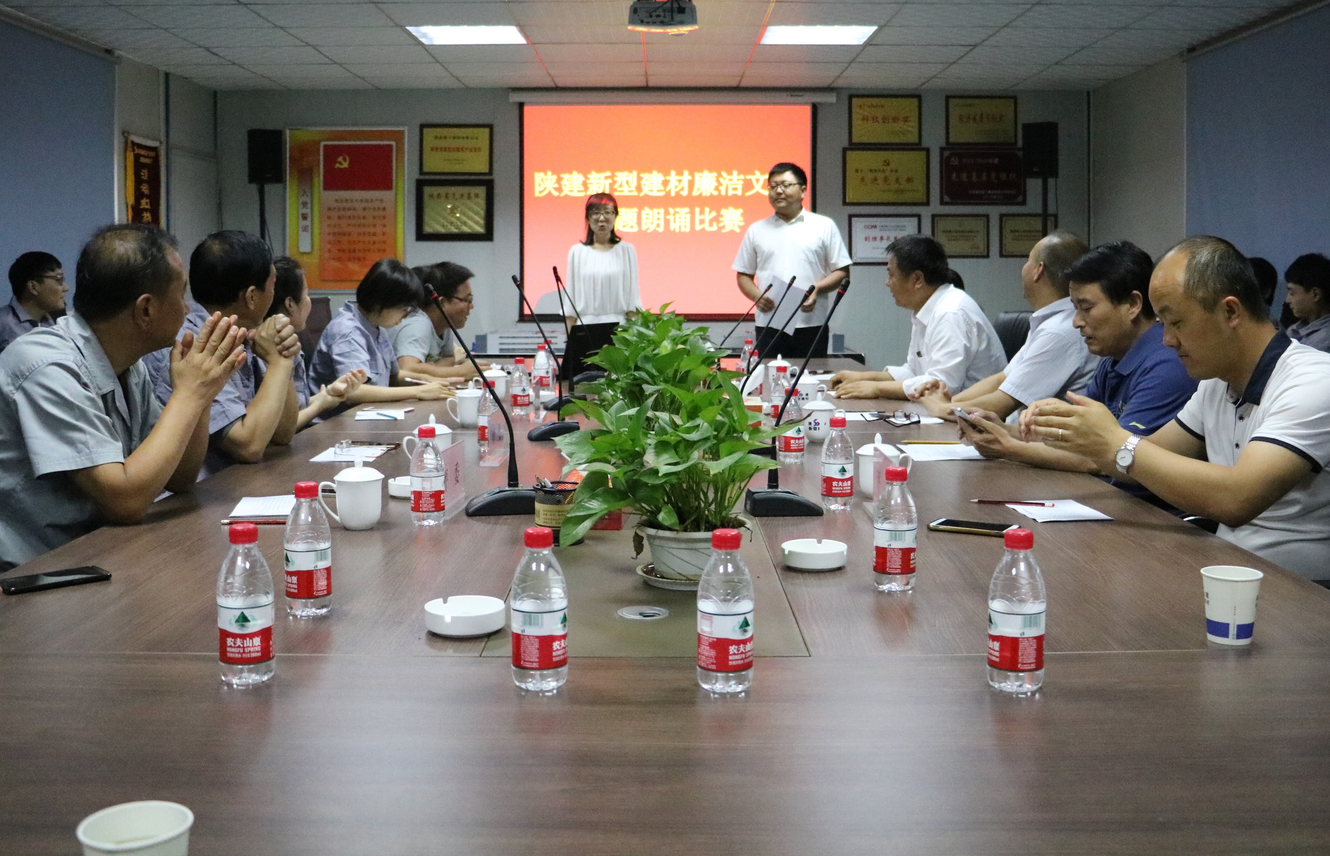 近日,“廉潔文化專題”朗誦比賽在陜西建工新型建材有限公司會議室隆重舉行,來自公司各個部門和車間的12名選手參賽,公司領(lǐng)導(dǎo)班子、部門主管和多名員工到場觀看比賽。