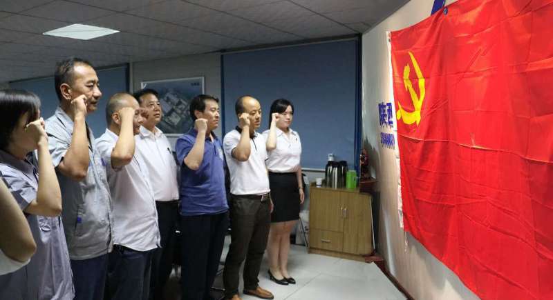 賽后,為慶!捌咭弧苯h節(jié),公司全體黨員面向黨旗莊嚴(yán)宣誓,重溫入黨誓詞。 |